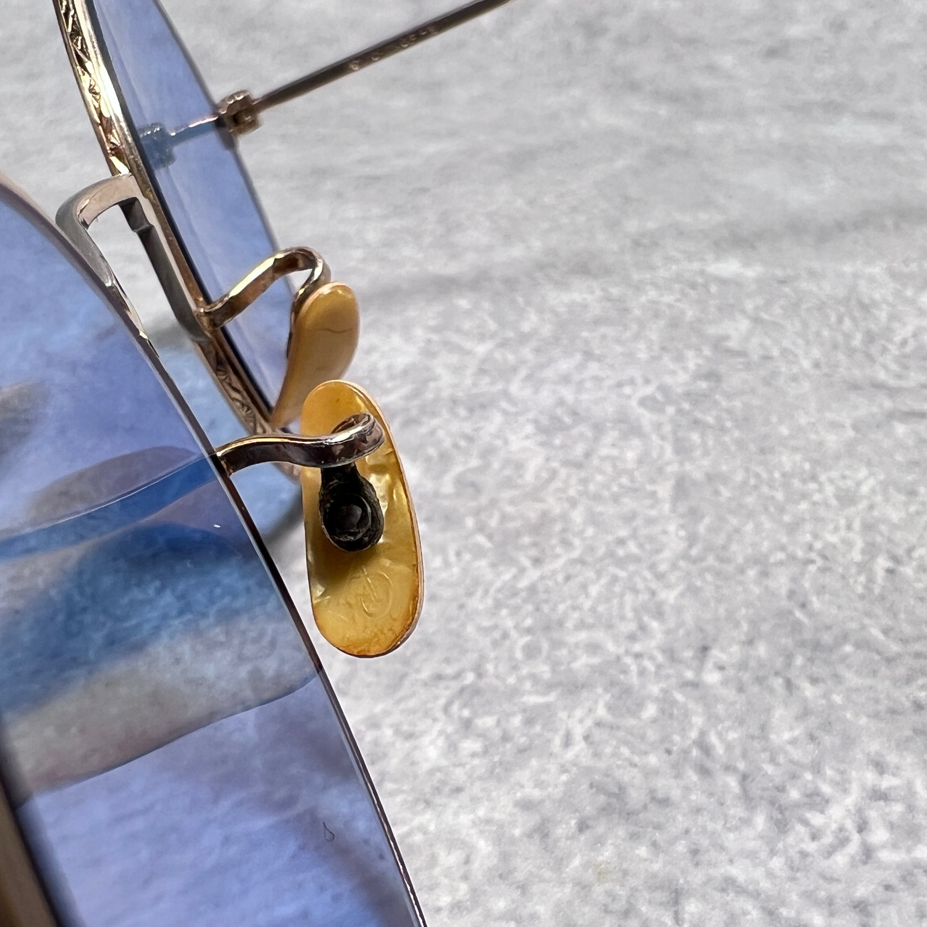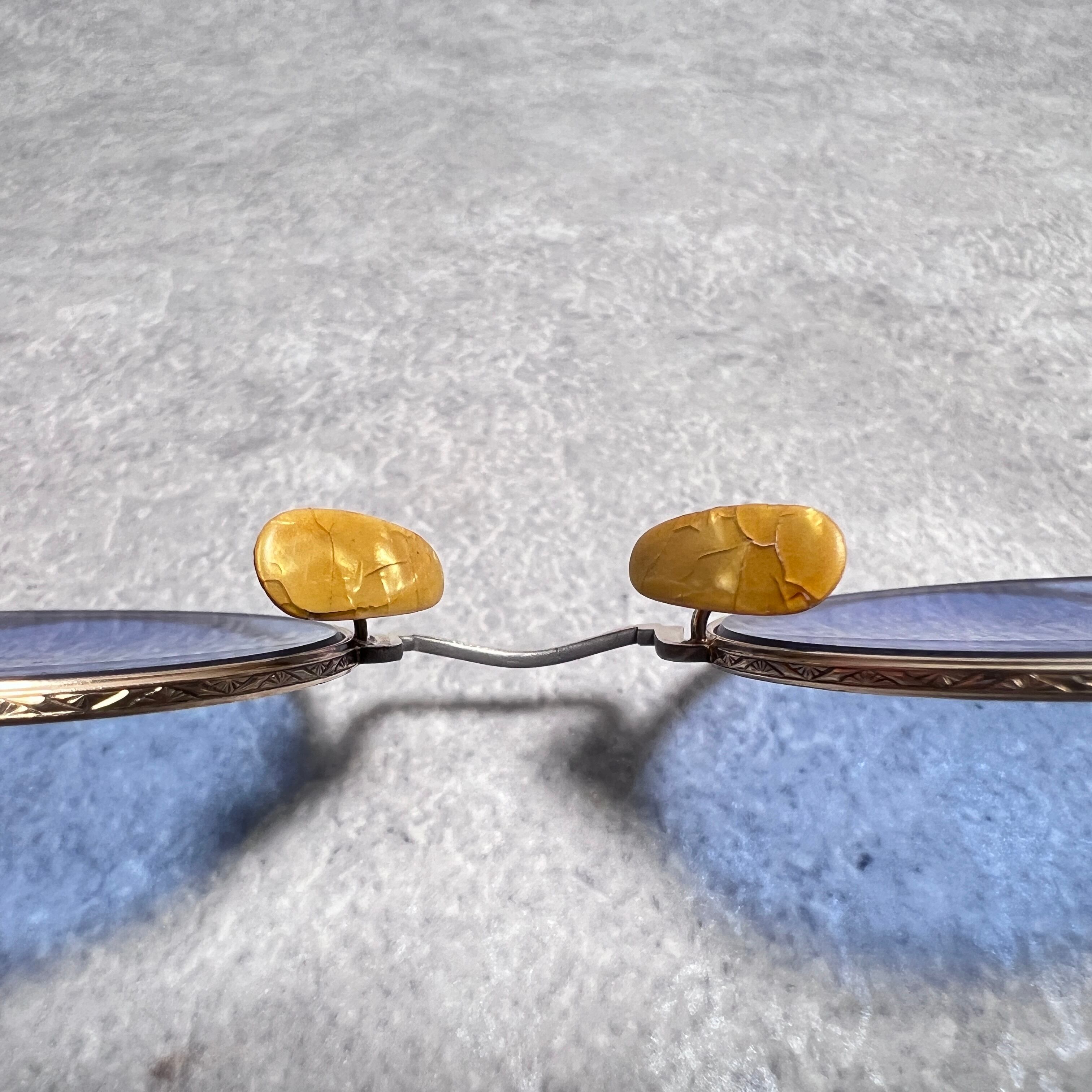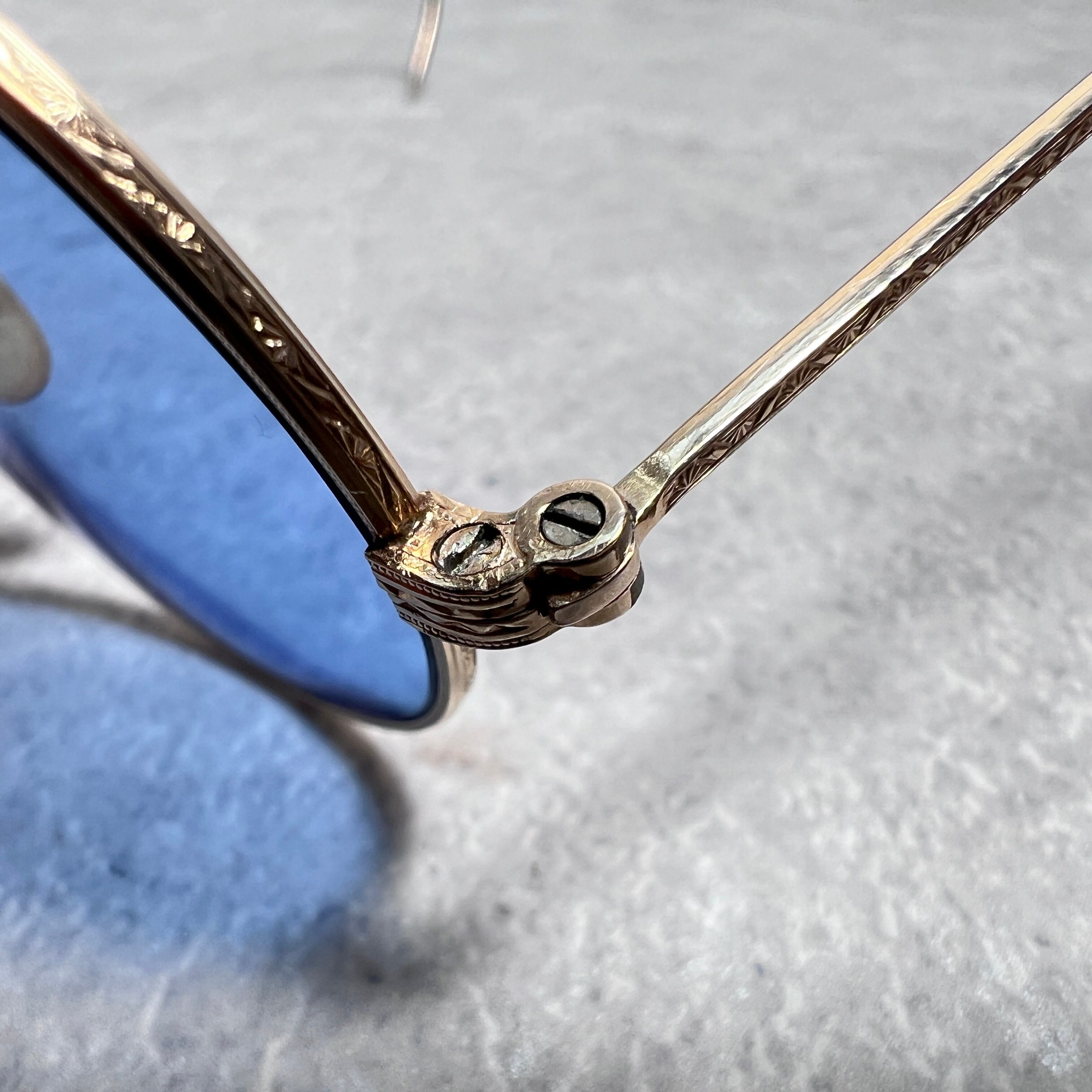フレーム正面には非常に繊細なミル打ちが刻まれており、フレーム側面、ブリッジ、テンプル部分にも繊細な彫金が施されています。