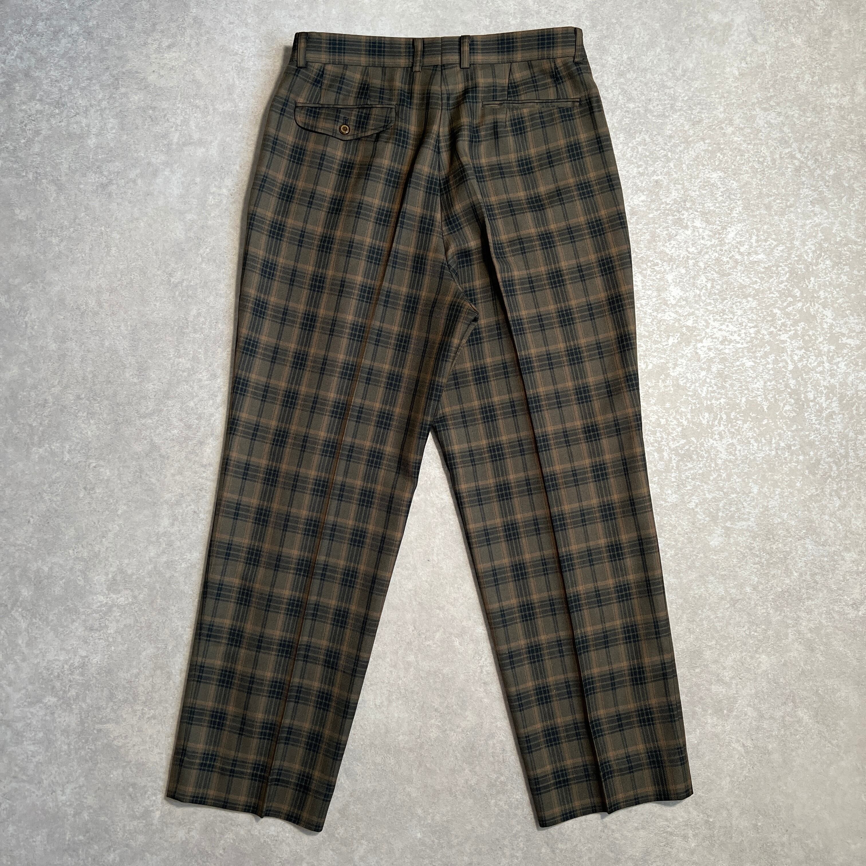 90s タータンチェックスラックス タックパンツ w85 scarlet oaks カーキ・ブラウン系