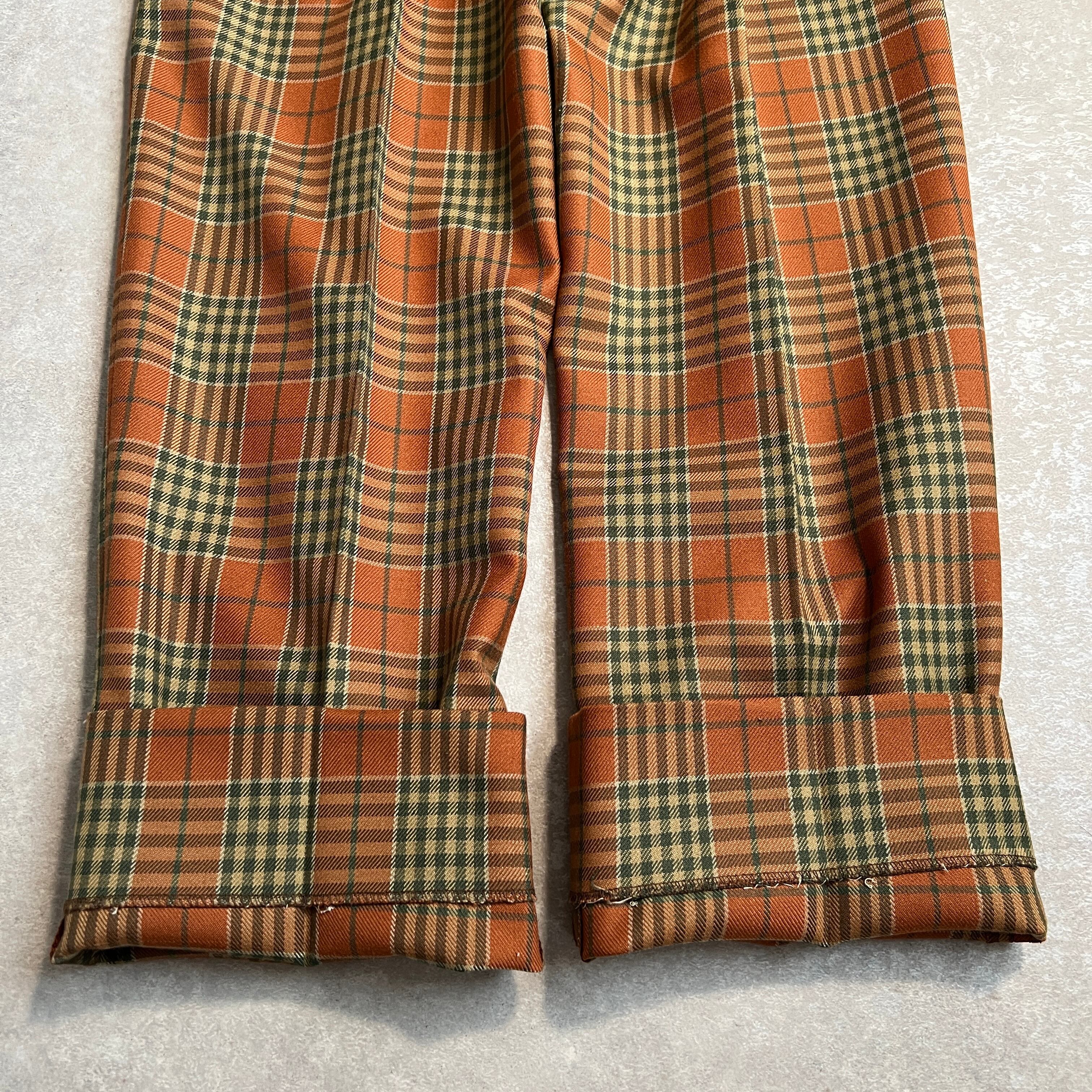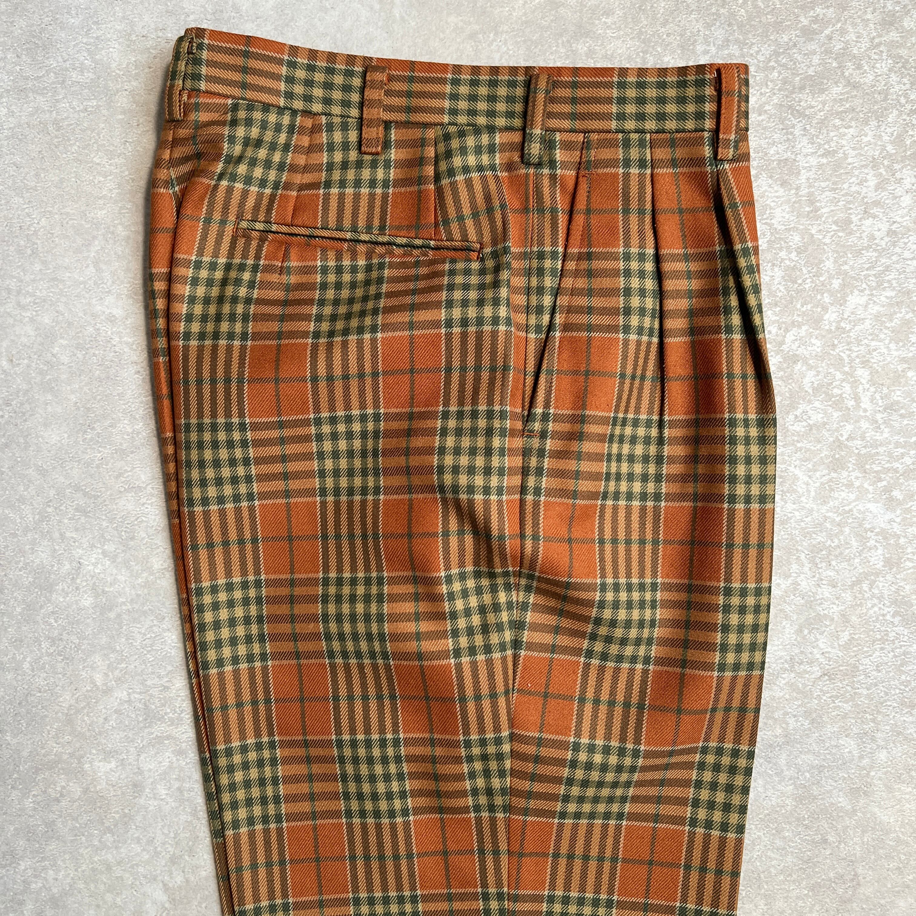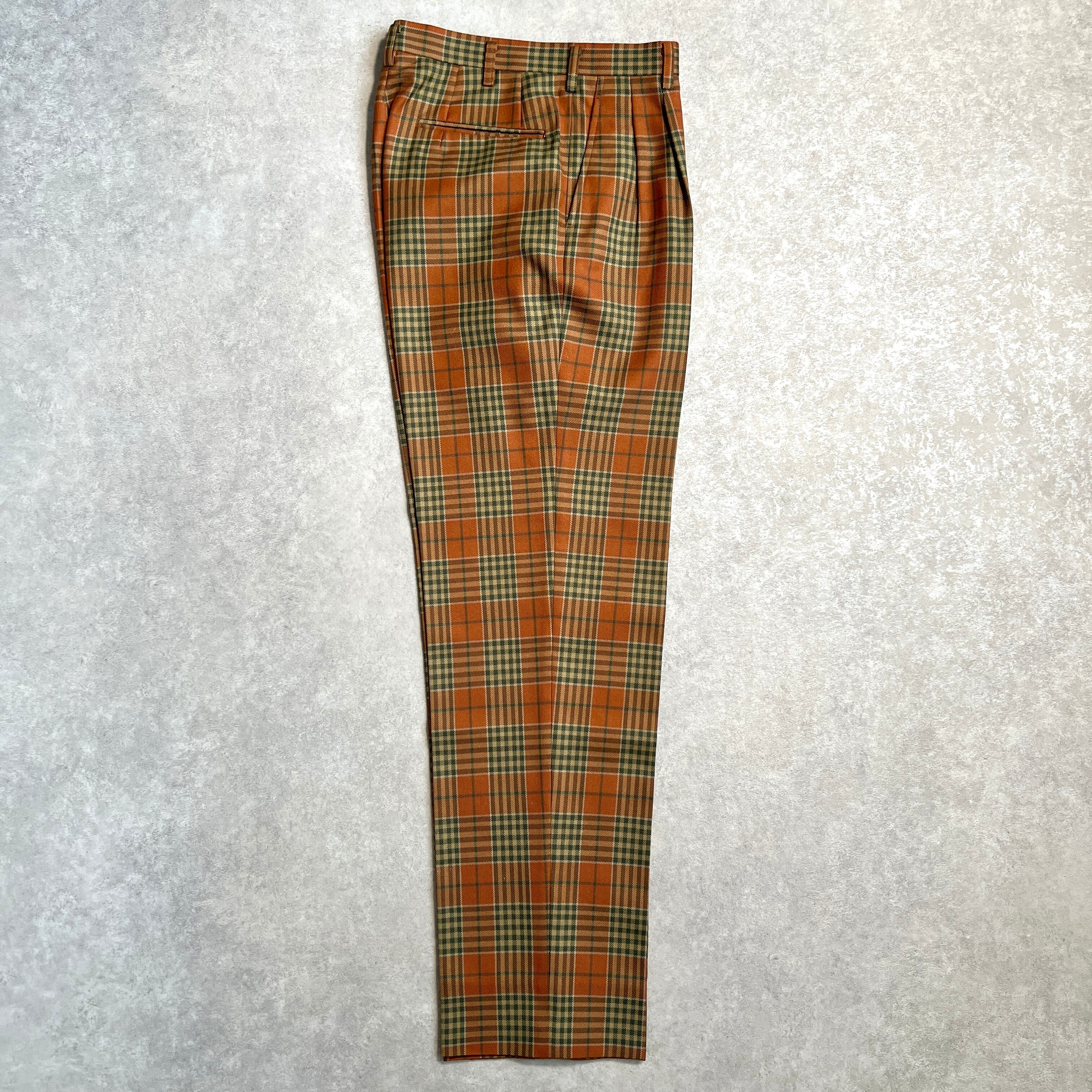 90s タータンチェックスラックス タックパンツ w76 オレンジ系
