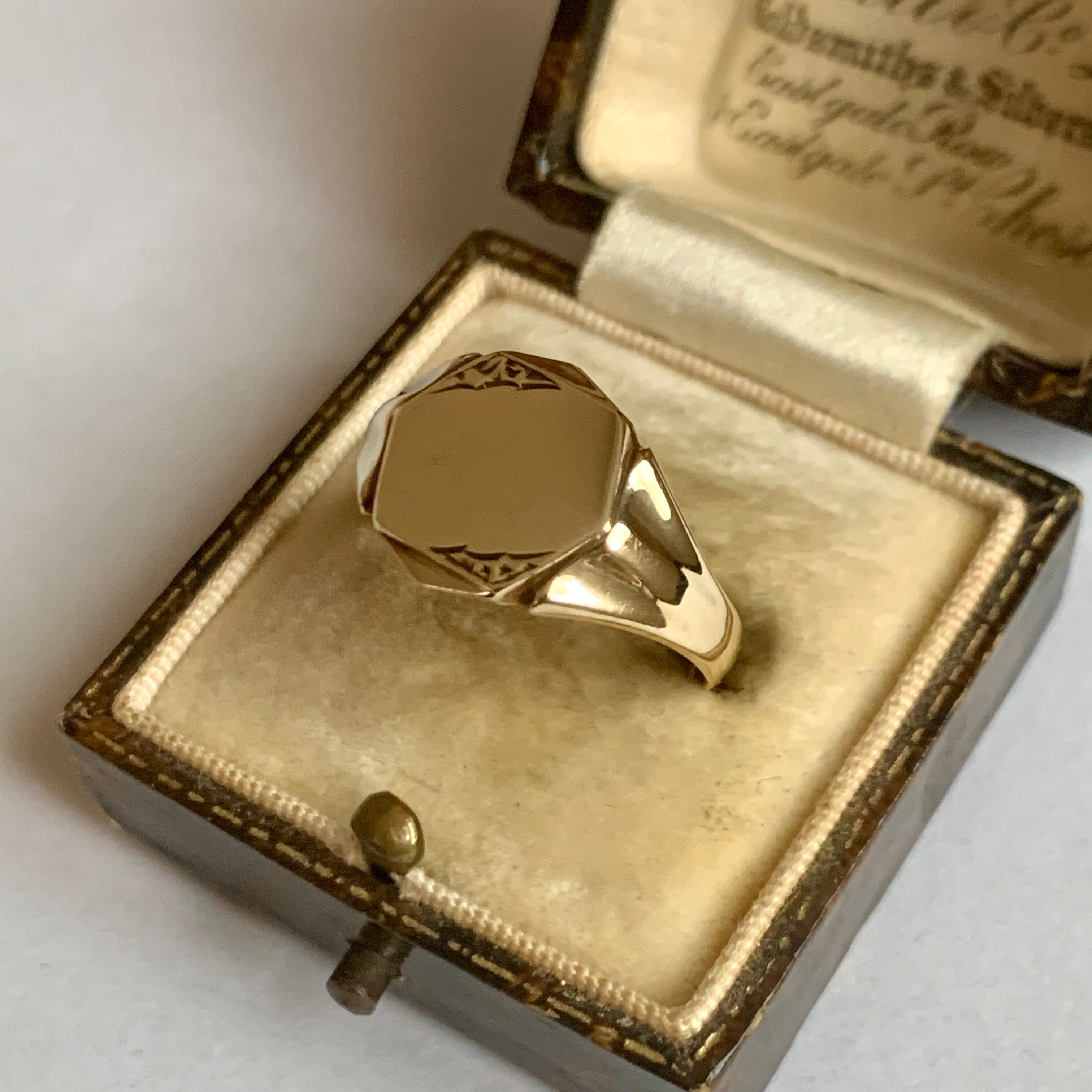 9k ゴールド 英国製 ヴィンテージシグネットリング 17号