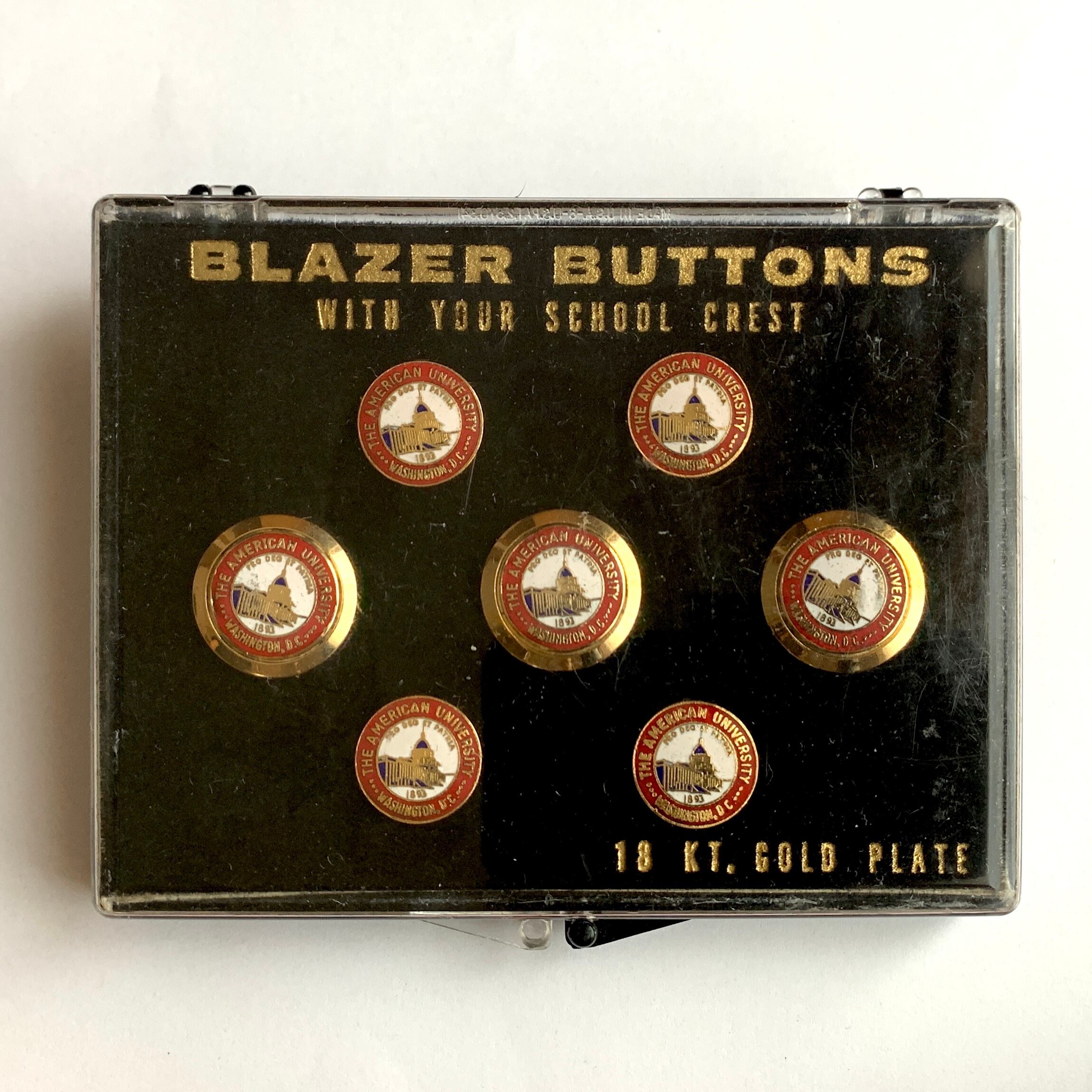 アメリカの首都ワシントンDCに1893年に設立されたAmerican Universityのエンブレムが描かれた替えボタンです。
