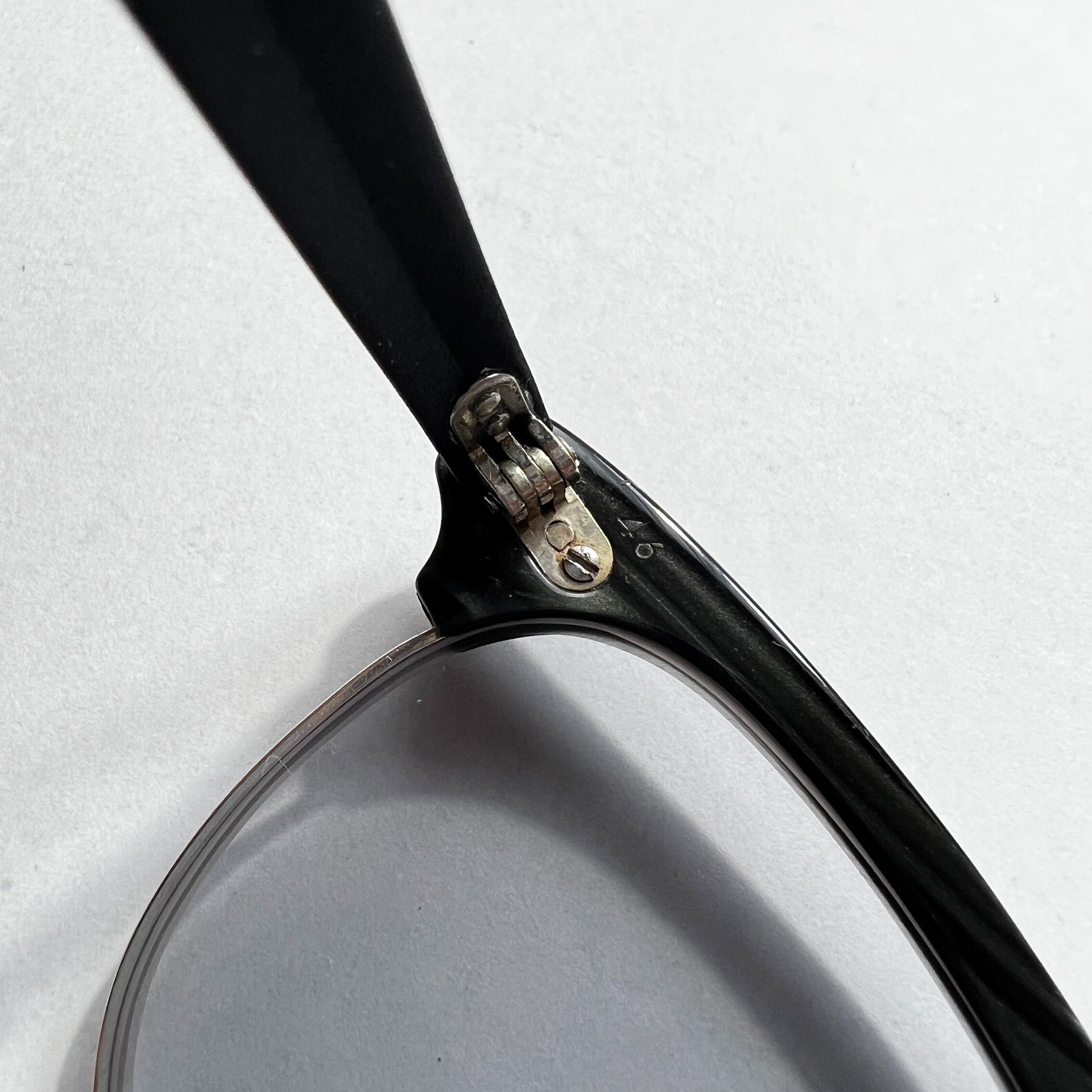 カラーはブラックウッドと呼ばれ、ただの黒ではなく、光の加減によって木目のような模様が浮かび上がる。ヴィンテージのセルフレームの中でも特に人気の高いカラー。