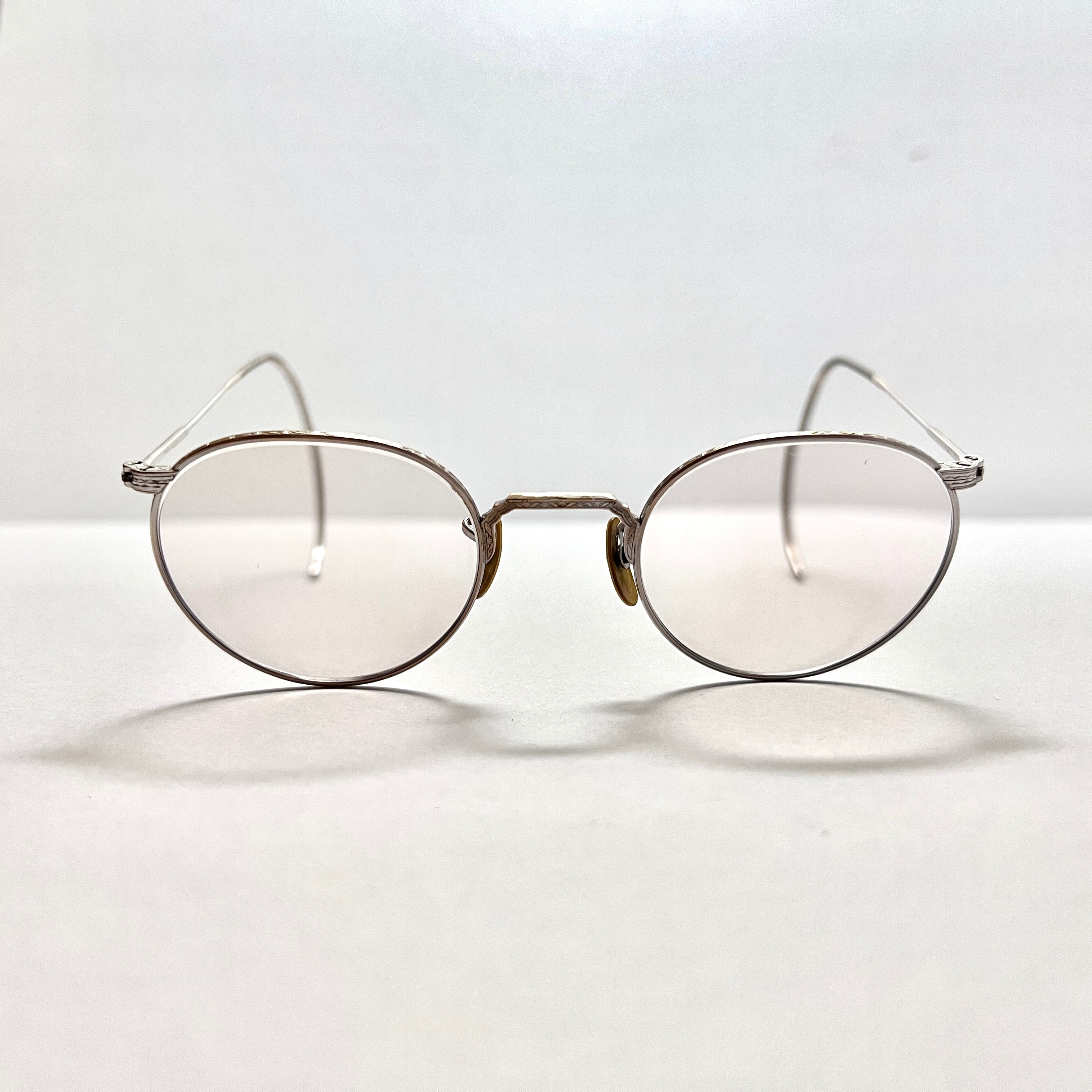 フレーム正面には非常に繊細なミル打ちが刻まれており、フレーム側面、ブリッジ、テンプル部分にも繊細な彫金が施されています。